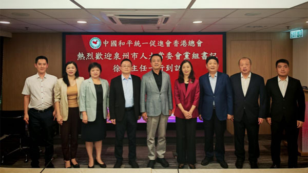 中國和平統一促進會香港總會今日(10月10日)接待泉州市人大常委會黨組書記、主任徐華一行並座談交流,探討深化泉港交流合作,共同推進兩岸融合發展示範區建設。全國政協常委、中國和平統一促進會香港總會會長姚志勝攜