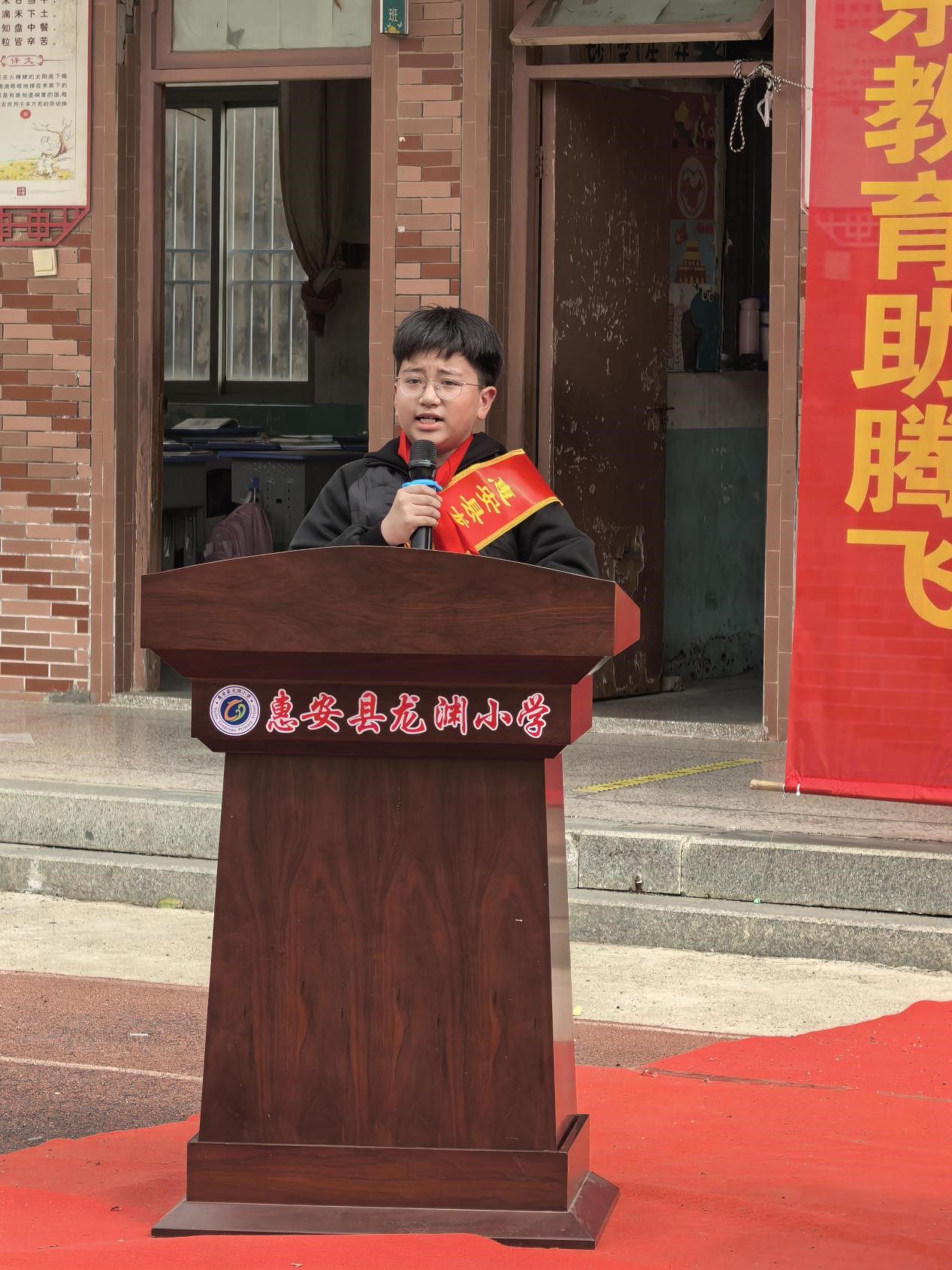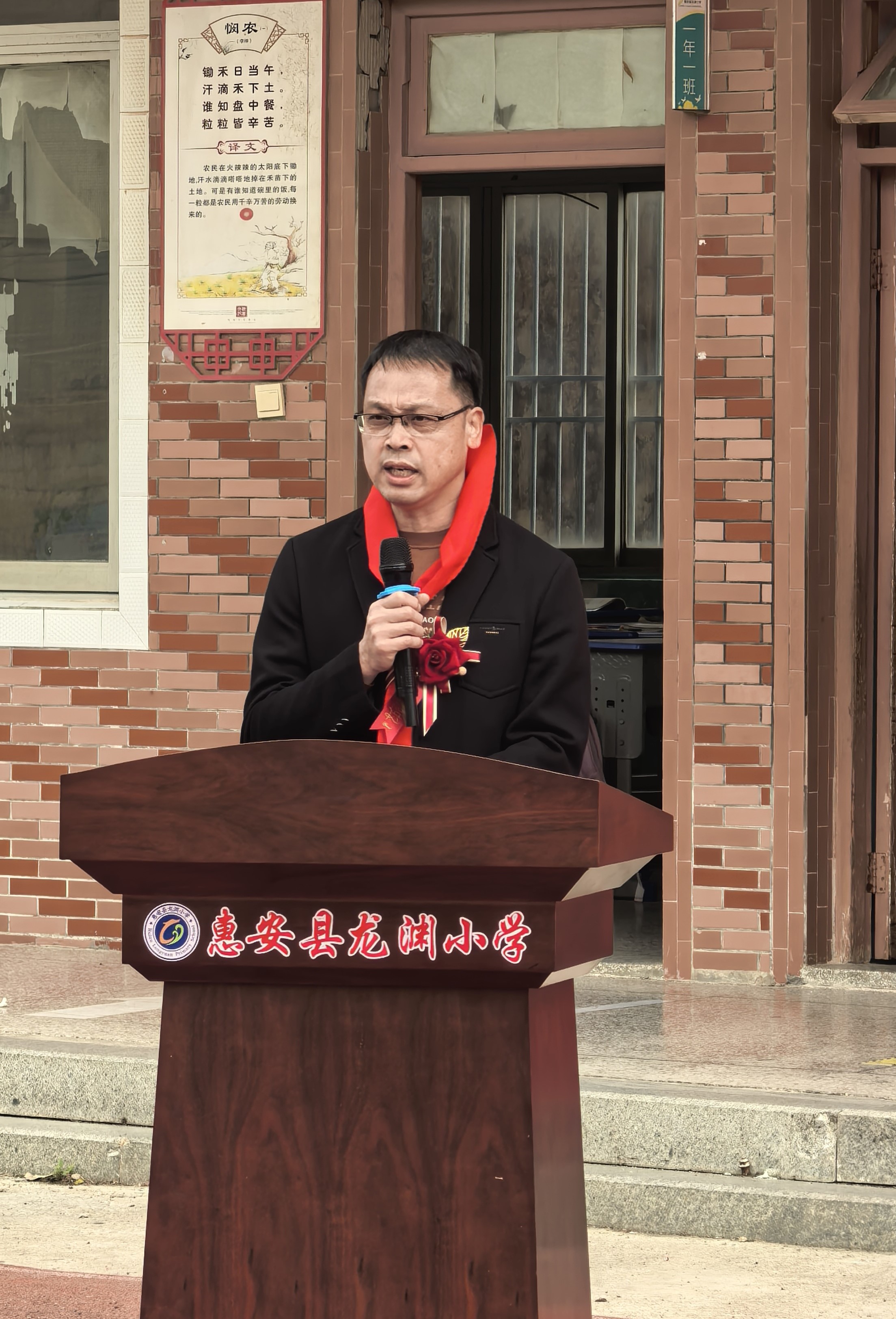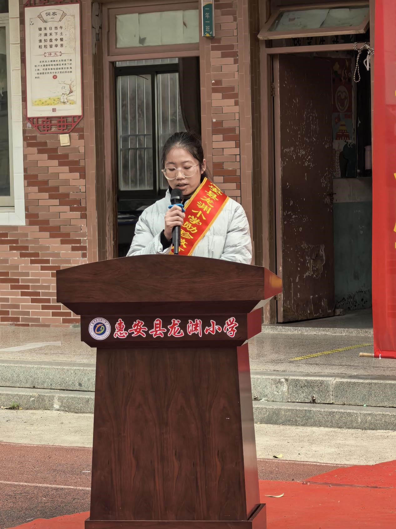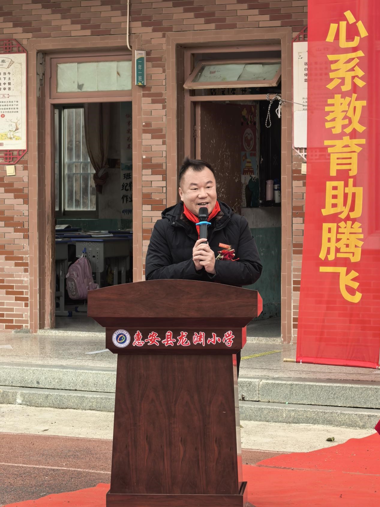 東嶺中心小學校長許福平講話,高度贊揚勛珍教育基金會的善舉,充分肯定龍淵小學2025年的教育教學成果。他希望全體教師堅守教育初心、精進教學本領,全體同學以榜樣為標桿、篤行不怠,也期待社會各界持續關注支持鄉村教育,攜手共筑教育美好未來。